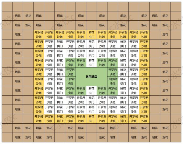 开罗印章册要求单个旅店人气11000,达成布局如下: