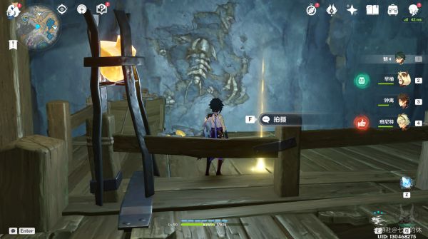位置:从巨渊主矿区传送点过来,往最下面走,在木梯口右边石壁上。