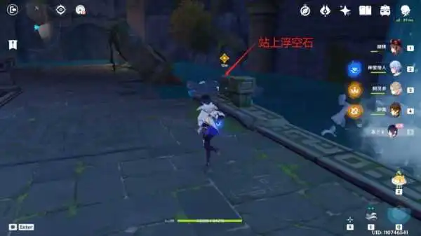 再次根据任务指示,找到另外一块浮空石(图中名字标错了),到达另一边的二层。