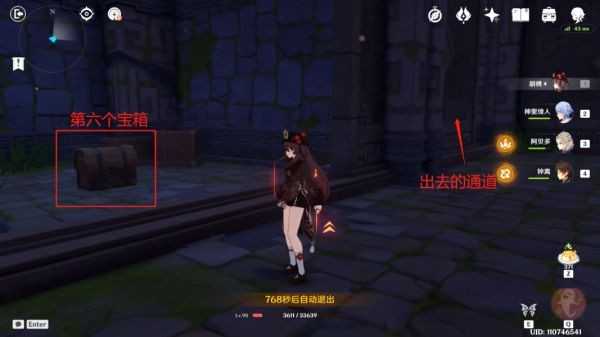 打开石门后再次打开正前方石门,可发现第六个宝箱。接着从上图所指示的通道出去。