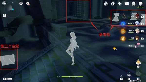 水降下去后,如上图所示来到第一层可发现第三个宝箱(注意上图参考物)