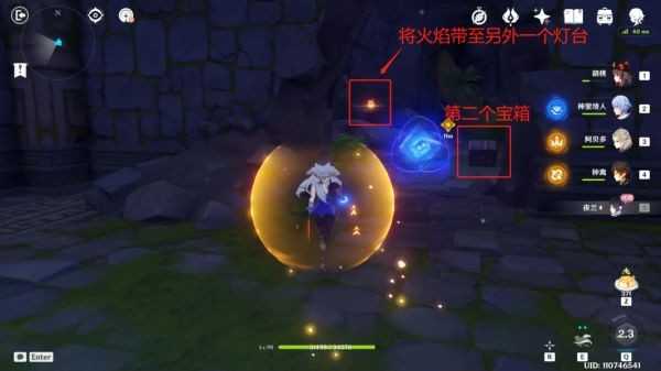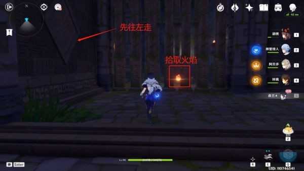 拾取宝箱后回头,来到上图位置,移动面前的石门(注意上图参考物),进去后拾取火焰,继续往前走。