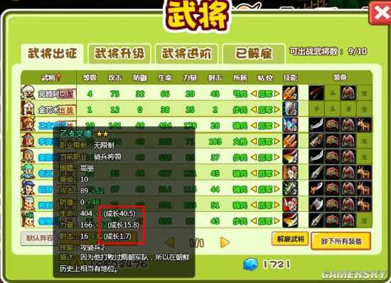 要合理利用,首先得有一些关于武将的基本知识,如上图是武将的属性介绍,我们需要关注的是武将的成长属性!成长越高,其培养的价值越高!越到后期在等级高的情况下,高成长武将属性可是比低成长武将高出一大截哦!差距在进阶后效果更佳明显!