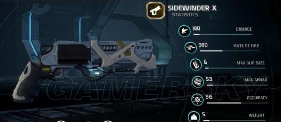 PS:发现一个大BUG,就是下图这把手枪“SIDEWINDER”,我一直没用过,但是,现在才发现光看这把手枪的数据也是DPS爆表,我已经通关了,不想再试了,你们可以试试。