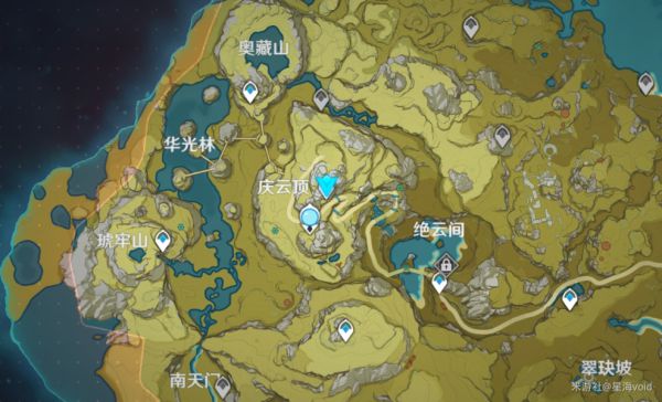 然后我们回到之前庆云顶的传送点,看向奥藏山。