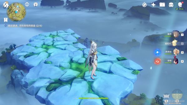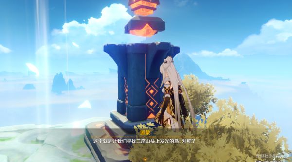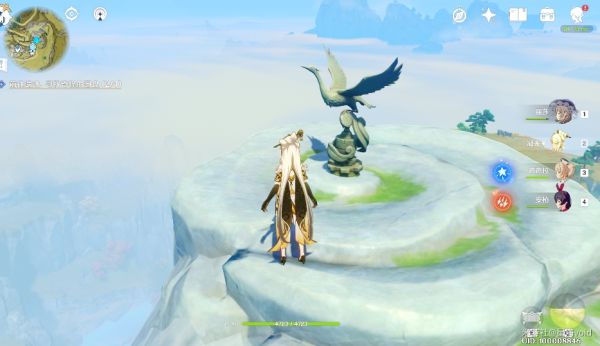 和前面一样把鹤头对准庆云顶,然后我们回到庆云顶,和柱子交互。就会出现气场,开风之翼上到三个浮空岛。
