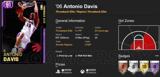 《NBA2K19》紫水晶安东尼奥戴维斯是猛龙队复古卡包的精英球员,其总评为91分,那么这张球员卡具体数据如何?有哪些徽章?没有获得这张球员卡的朋友可能并不清楚,下面就为大家带来《NBA2K19》紫水晶安东尼奥戴维斯复古卡评测,感兴趣的朋友来看看吧!