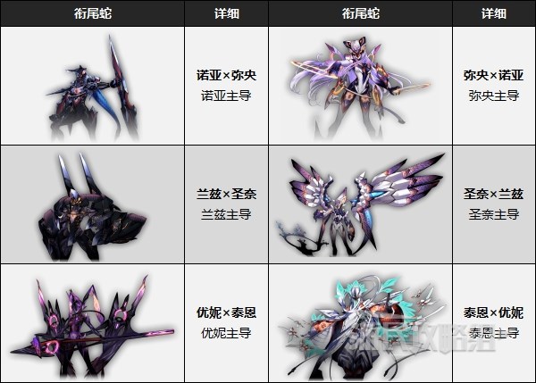 诺亚和弥央6人在战斗中可以进行两两融合,融合后在一定时间内科变为能够大幅提升战斗能力的“衔尾蛇”。