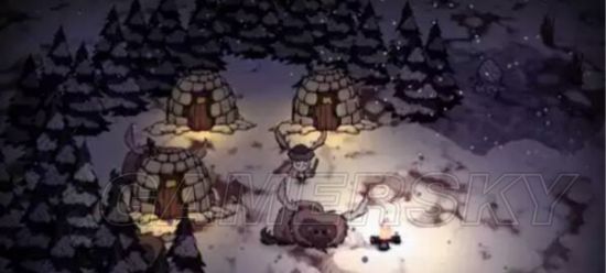 由多个海象屋和常青树组成的海象村落。几个海象爸爸的远程攻击很容易把玩家风筝死,而且也有大量冰狗,十分危险,请带好伙伴做好充分准备再去挑战(作死)。