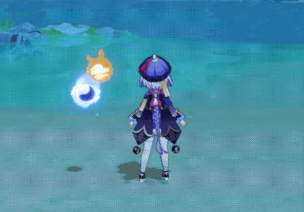 元素战技是一个可以为敌人挂上冰但不会为自己施加冰附着的技能,可以回血,可以造成冰元素伤害,是一个强劲的挂冰近战技能,在该技能状态下,七七的普攻会对自己和队伍中的角色进行回血。技能为360º旋转攻击。