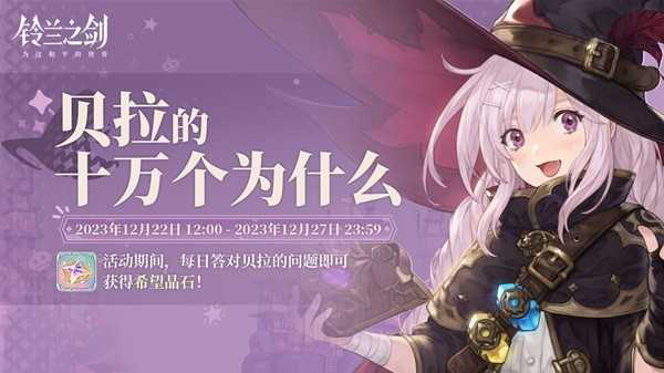 活动说明:活动期间,每日答对贝拉的问题,即可获得希望晶石奖励!