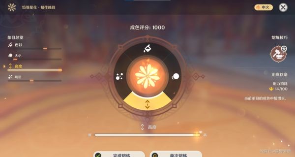 2.接续上述步骤,在 高度 条目 使用一次【中火】明察分毫