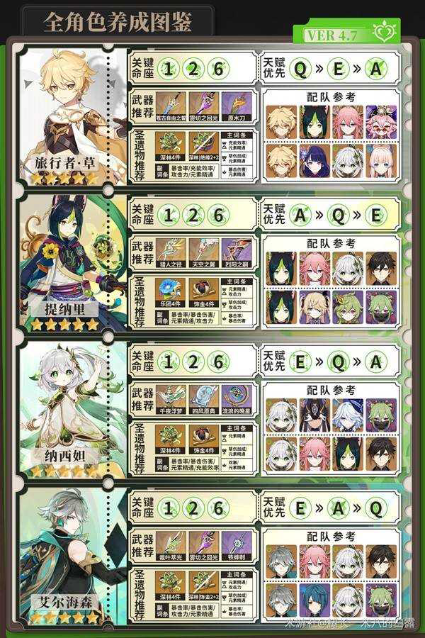 《原神》4.8版本中各个草属性角色应该如何培养呢?许多小伙伴和我有着同样的问题,下面是由“腿长一米八的白露”为大家带来的《原神》4.8全草属性角色养成攻略,希望可以帮助到大家。