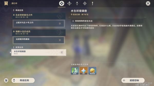 《原神》水生环境调查任务是层岩巨渊的一个隐藏任务,玩家需要前往地下水泽钓鱼来触发任务,下面请看由“二也也”分享的《原神》水生环境调查任务攻略,一起来看看吧。