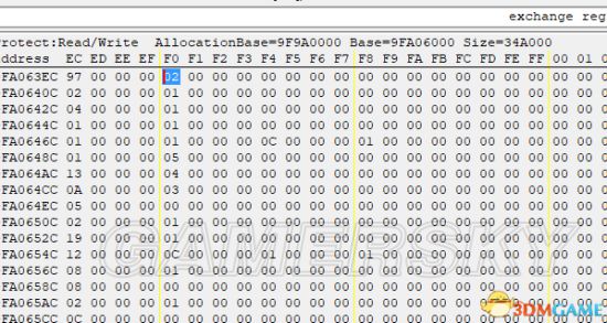 浏览它的相关内存区域,这个97(16进制)就是我抓的绕行兔数量。