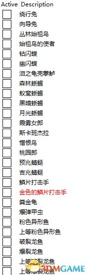 还有就是有6个红色字体表明的生物,它们是之后渣渣辉地图里的 我当时试内存地址的时候试出来了,又怕出什么BUG给改回去了,这里标明出来是为了方便之后更新版本后修改,现在还请大家不要修改他们的数量。
