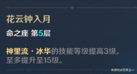 描述: 神里流•冰华的技能等级提高3级。至多提升至15级。
