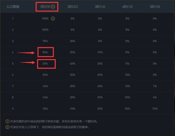 1.4人口的1费卡的概率是50%,而5人口1费卡的概率是35%,从概率上就直接少了15%,因此4人口相对于5人口更容易去追出3星1费卡;