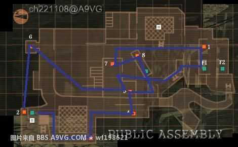 左下为出生点,顺序位3-4-8-7(冲刺)-1-5-6-2