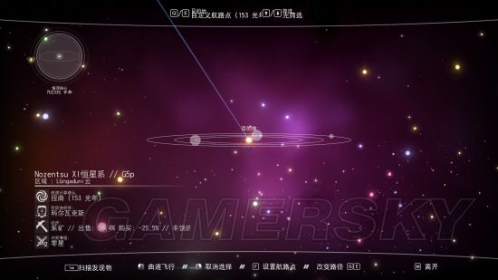 下面就可以开始刷货船了,首先刷外形颜色,在你的飞船上装上经济扫描仪(刷船必备),然后在星系中寻找富有、丰裕、兴旺的星系,找到一个后不要急着超光速跳跃,鼠标选中星系,然后按F再松开,这个星系就会被标记为航路点,然后存档,推荐用自己的货船存,快一些,没有货船的萌新可以去空间站存,存完就可以超光速过去了。
