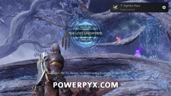 奖励:奎托斯4500XP、芙蕾雅1125XP、林德虫之鳞、烈风火花x6、奖杯【适得其所】