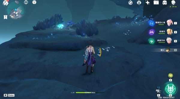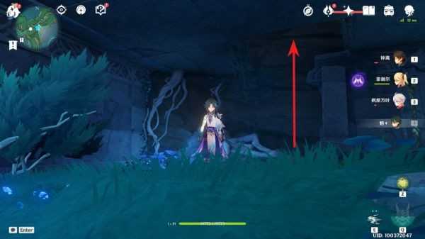 1,来到标记附近,可以在右手边看到一个山顶,里面有一个仙灵,引导它到目的地