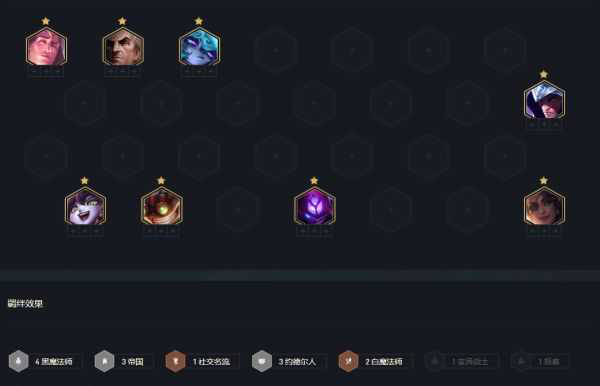 3、4阶段: 3-2升级6人口,如果连败这时候开始大搜卡,争取阵容大部分棋子2星,特别是乌鸦2星就可稳定锁血。如果阵容有帝国与黑魔法心或转职,就可看对局节奏快慢,卡着30-50金币用多余利息追乌鸦三星,同时可追薇古丝、璐璐、男刀与炸弹人。如果没有帝国与黑魔法师的心/转,棋子都2星后就可开始攒钱准备升级7人口,开4黑魔法师在追这几枚棋子的三星。