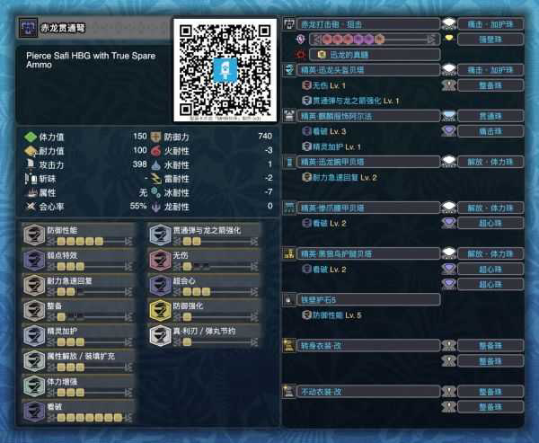 真节弹+8发弹夹其实是非常好用的,远距离突突突甚至有时候一个弹夹 可以射出15发以上的弹药,打特定怪输出非常可观,这里首推打弟弟龙第一阶段试试。 同时防性5,防强,体3,和加护3让这套的生存能力也相当可观。