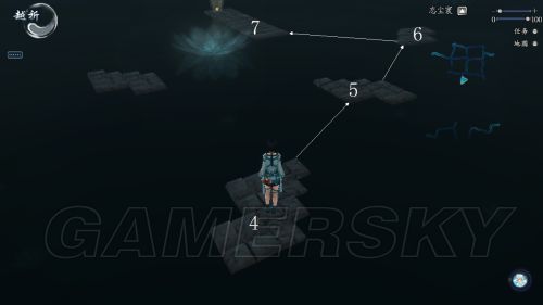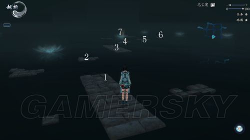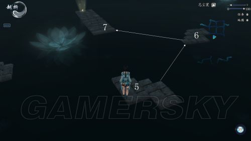 忘尘寰第二道迷宫左路中部有一个小猫,相信有很多盆友对跳这个水上的台子头疼到崩溃,拿到这个不仅可以获得一枚软星,还有一个称号“清雅绝尘三”。其实我估算了一下,按照人物设定的起跳距离没几乎可能够得着最后一个台子。通过不断摸索实践,楼主发现其实按照仙六的跳跃系统设计,是有小技巧可以卡的,就是水面起跳。