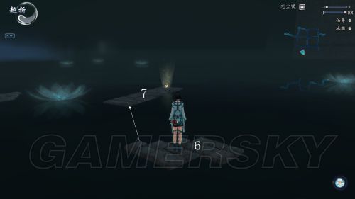 其实5号台子到6号的距离及6号台子到7号的距离是相同的,都是水面起跳刚刚能够得着的范围,但是由于跳5到6时,5有足够的助跑距离,给人感觉会很流畅,6到7助跑很短还需要一个角度的转弯,因此会比较难。