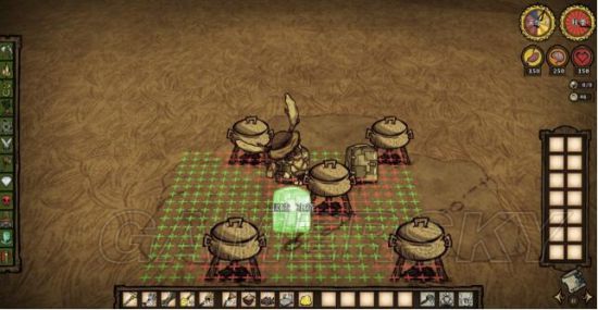 现在开始建造烹饪区,第一口锅必须放在这个十字地形的中间。