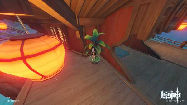 目标地点在岩神国那边,充满国风,发现流程是这样的,到了岩国看到有个大树屋子(望舒客栈),走到最顶层,阳台上有个盆景假山,上面亮光,然后F互动说可能是一个地方标记位置。