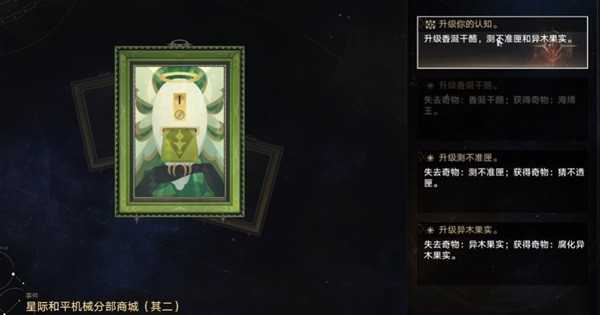 之后,在同一场模拟宇宙中刷事件区域,刷到星际和平机械分部商城(其二),将它们升级成猜不透匣、腐化异木果实、海绵王。