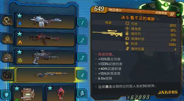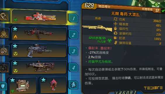 这把面板数据有点低,但是暴击会生成1枚跳弹并且额外造成100%的电击伤害。