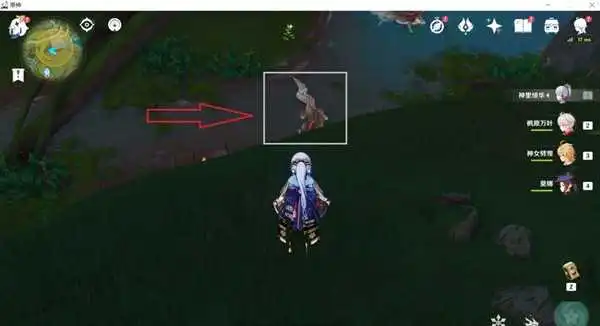 来到二净甸神像右上角如图位置,找到棘冠鳄,按“Z”进行拍摄。