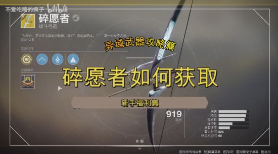 《命运2》异域武器碎愿者是一款战斗能力出众的弓箭,它有着游戏中独一无二的透视能力,下面带来玩家“不爱吃糖的疯子”分享的《命运2》异域武器碎愿者战斗弓箭获取方式,希望能为各位玩家带来一些帮助。