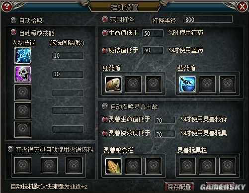 保存设置可以将设置好的内容保存起来,下次再使用挂机打怪就不用再次设置了。