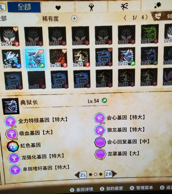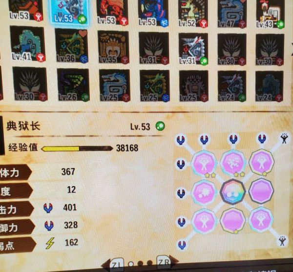 怪的部分一路上也没怎么摸,讯龙用的就是主线让你摸的,摸了只轰龙做交通工具。打完灭尽摸了几只咩咩子,打boss得时候其实也等级太低没用到,还是雷斯过的,一周目以后摸了差不多一小时的狱狼龙用到通关。狱狼龙有个好处就是龙基因基本上就他自己和丝瓜,初始岛都能摸到