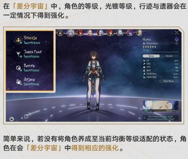 ①当我们的角色没有满级,差分宇宙中,这个角色会直接升到当前均衡等级下的等级上限。