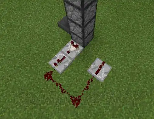 接着放上一个实体方块,再插上一个红石火把。