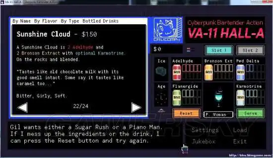 先以SUGAR RUSH 为例(因为难度较低且没有其他操作),基酒名字对照右边的吧台即可。按份数添加(教学部分有大杯的教学,在此不做赘述) 。