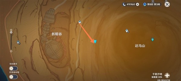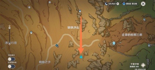 从沙丘处锚点往南边走,一处愚人众营地里,有一个雷盾和一个火铳,记得带好破盾的角色。