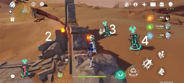 以下详解1-4页点位,如图,从右侧锚点飞过来之后,利用方碑上的四叶印移动到四个解密地点,每个地点会刷新怪,每个地点一张书页。