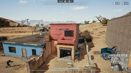 由于队友被楼内的LYB偷袭,其余队友从楼下吸引活力,我从二楼窗口爬入,成功偷袭了敌方。善于运用箱子、墙壁进行攀爬。沙漠地图中,要留意很多诸如此类的房屋,在攻房之前仔细观察房屋周围的状况,有的房屋可以从隔壁楼跳过去,有的房屋可以从门前的石柱,门爬进去。