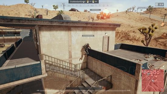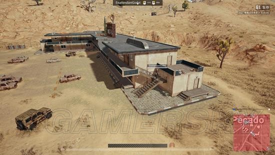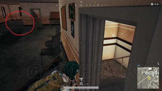 别墅楼、Pecado这些地方是很考验跳伞的地方,往往枪法好不如跳得早,跳得早不如运气好。一个有枪的萌新,可以灭掉一队手无寸铁的盒子精。经常看主播、集锦的玩家都知道别墅区独特的上二楼的方法。在南门的侧边有一个石柱,跳上石柱,再跳上门,最后爬上二楼,那些落伞迟而选择逃难的玩家,可以在外捡到枪后选择从这里偷袭进去。