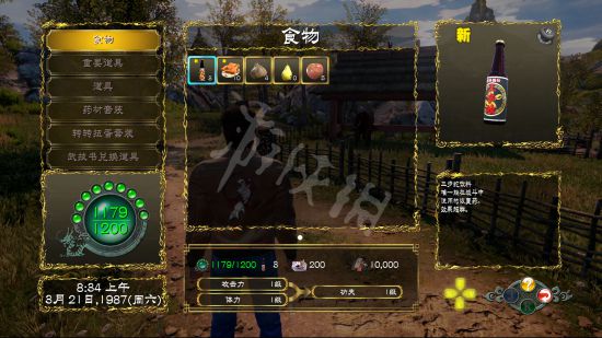 按U可以打开仓库界面,在这里玩家可以查阅身上的食物,重要道具,道具,药材,扭蛋,武技书等物品也可以更换自己的服装,在生活中,玩家可以通过做诸如采药材、钓鱼这种小工来卖钱养家,这些钱币可以用来在商店买食物也可以用来交换武技书等物品。