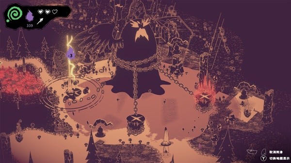 那么围绕着很有特色的附身玩法,游戏设计了大量的解谜和战斗内容,甚至是数场围绕附身机制的BOSS战——比如围绕跳跳怪锤下三颗钉子完成的敲钟任务。