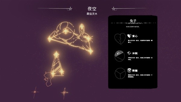 关于战斗的更多问题可能来自资源循环:游戏内有三种资源,分别是星星、使用“附身技能”的紫球和血量碎片,玩家通关收集星星→完成星座可以获得增加冲刺次数、子弹容量和血量,但问题在于,不知道是否是有意,游戏中当玩家死亡之后,复活时只有2点血量,而回血的途径只有杀怪,且杀怪只是概率掉落血量碎片,还有进一步损血的风险,那么这样的回复机制毫无疑问也是在中后期带给玩家负反馈的重要来源——所以本作罕见的出现了,玩的越久评价越低的情况。