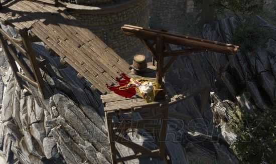 打法官的位置在木斜坡上面的平台,因为传送传不到这里,之所以死在这里,是因为,我整体输出实在太低,所以用我影刃的变鸡先控住,变鸡后他自己跑到这里来的。