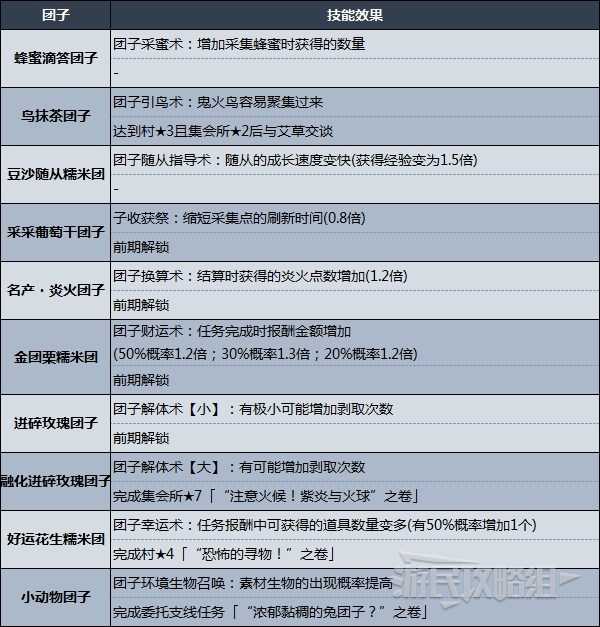团子解锁条件及技能一览